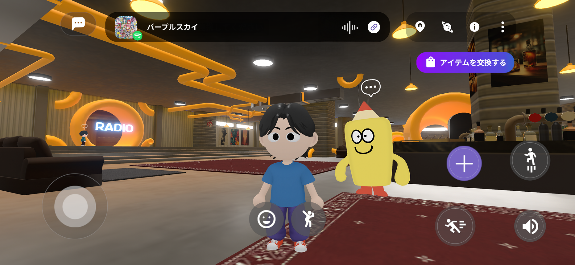 頭上に吹き出しマークがついているアバターはメンバーbotとなり、会話はランダムで応えています。今後もしかするとメンバー本人が登場することもあるかも‥?