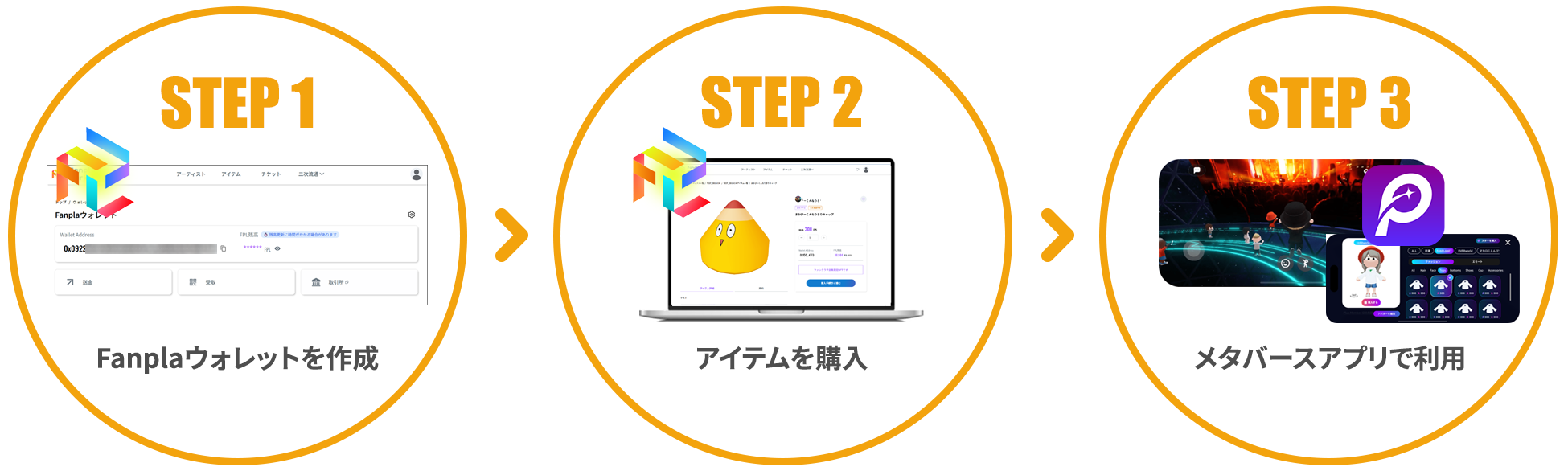 アイテムは「Fanpla Market」より暗号資産"Fanpla(FPL)"を利用して購入いただきます。