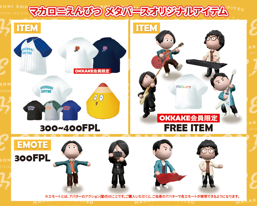 メタバースサービスをよりお楽しみいただける、マカロニえんぴつのオリジナルアイテムが販売スタート!